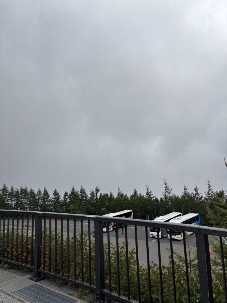 さっきまでかなり晴れているなと思ったら急にあたりは雲一面に。山の天気は変わりやすいというけれど、五合目でももうその兆しが。