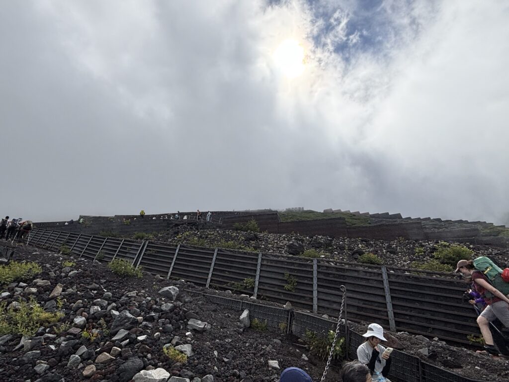 このペースだと八合目までもあと少しで余裕だ!と思っていましたが、実は七合目から八合目までが果てしなく長く、富士山の長くつらい難所といっても過言ではありません。