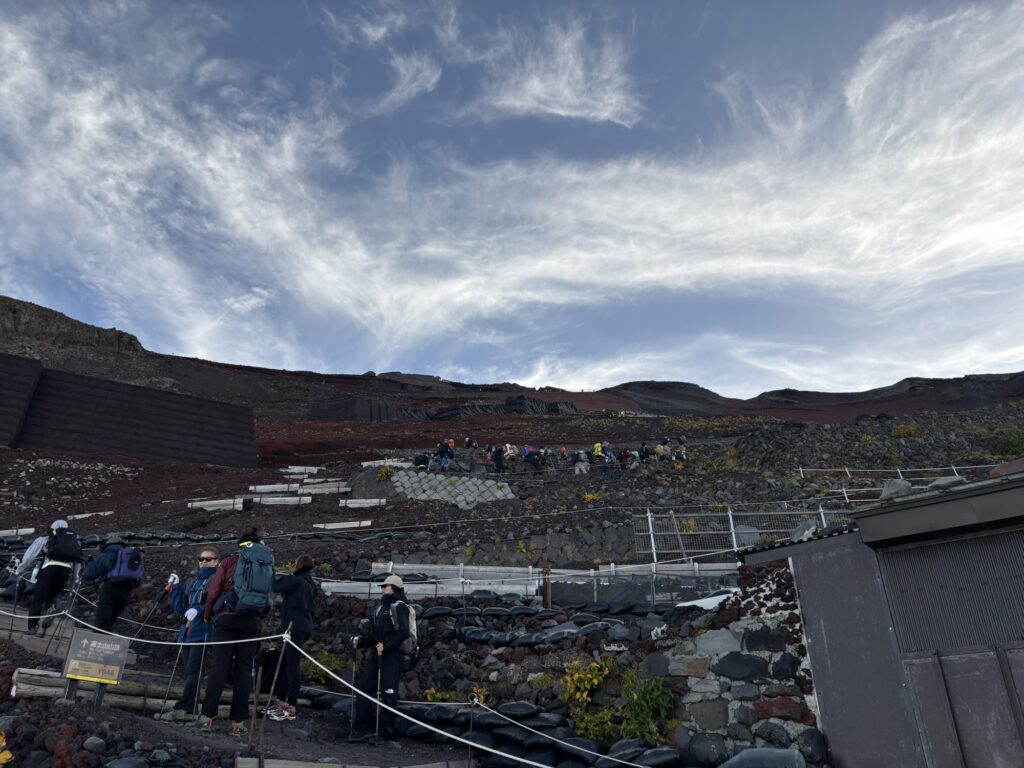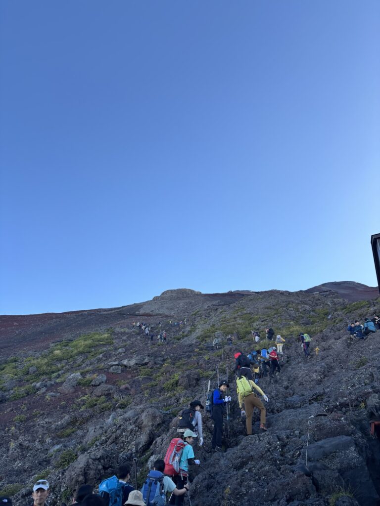 ルートは「吉田ルート」と呼ばれる、山梨県側の富士山の北側から山頂を目指すルートで行きます。富士山に挑戦する登山客の半数以上が利用している、最もメジャーなルートだそうです。