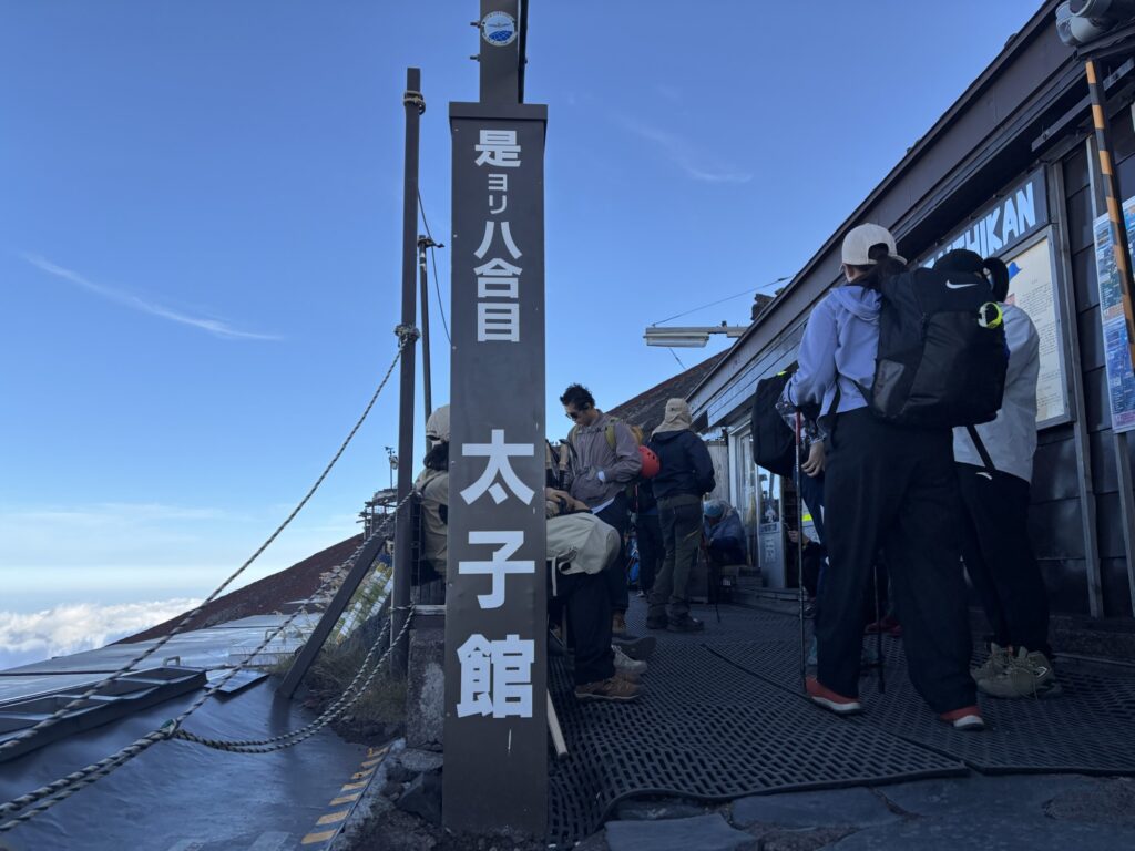 16:50 そしていよいよ八合目に突入。八合目に入った目印の「太子館」へ着きました。「これより八合目」の文字に一旦安堵します。